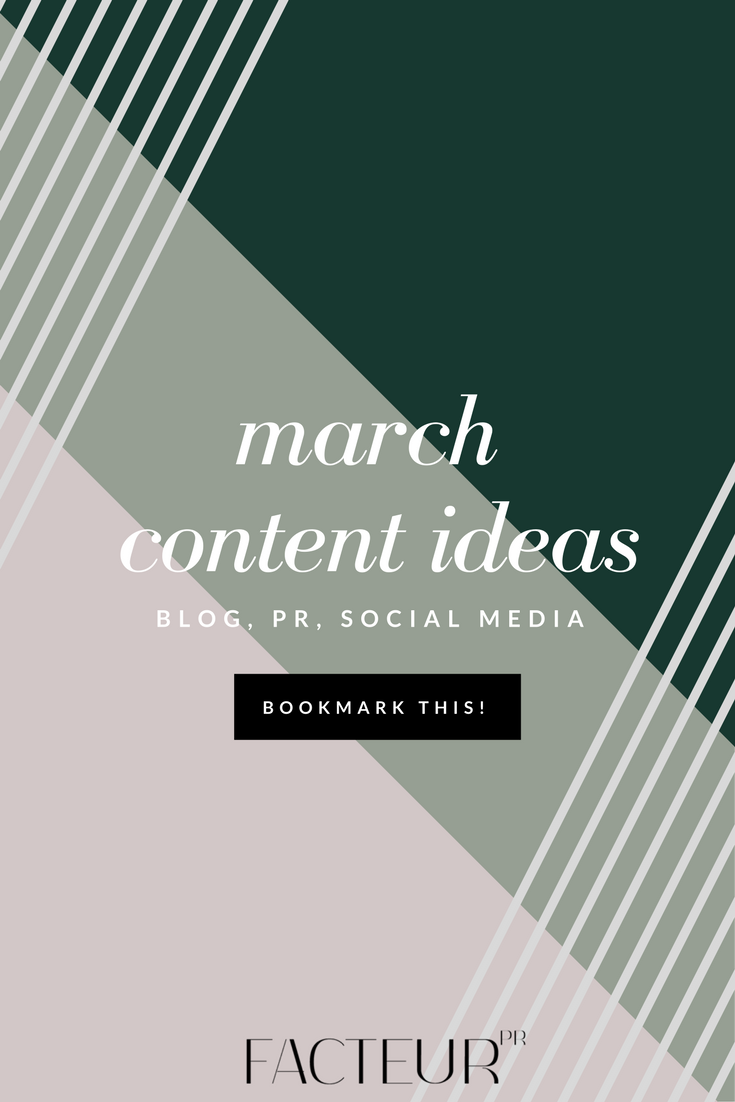 Who can believe it's March already? While you're gearing up for spring, don't overlook this important month, chock full of great events that can serve as an inspirational source for blogging. These ideas are also applicable to your social media and media relations pitches. To get you started, here are just a few opportunities this month to align your brand or business with some already note-worthy happenings online.